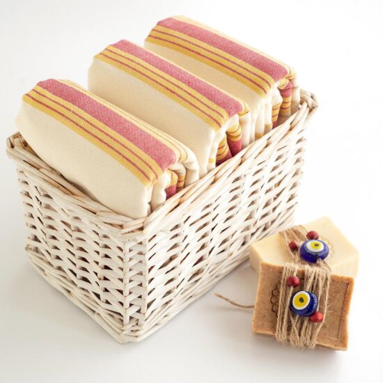 This peshtemal towel has been hand crafted with 100% natural Turkish cotton threads for your bath and beach comfort.